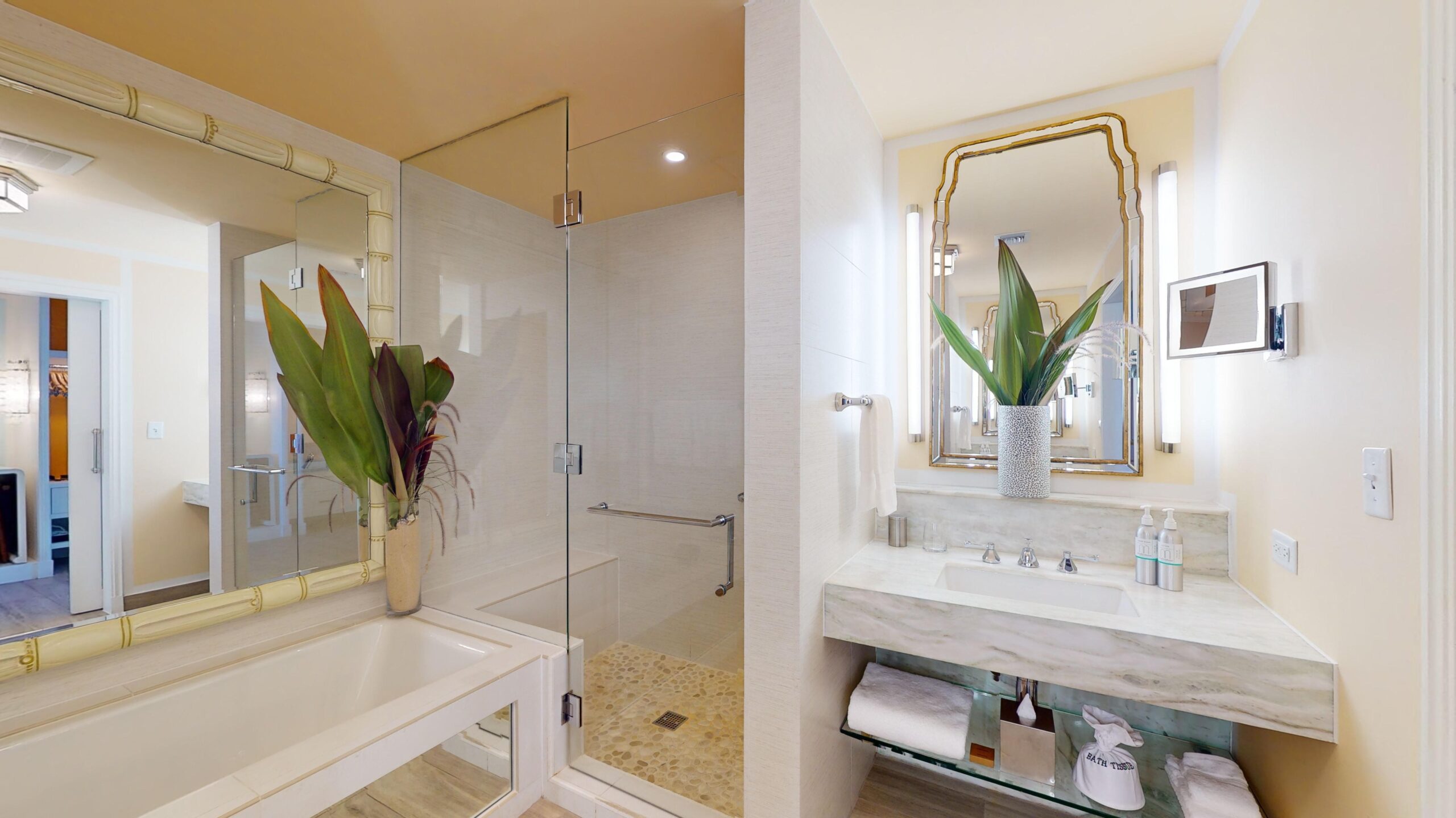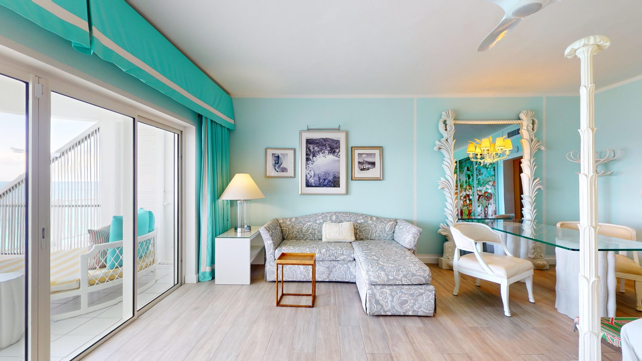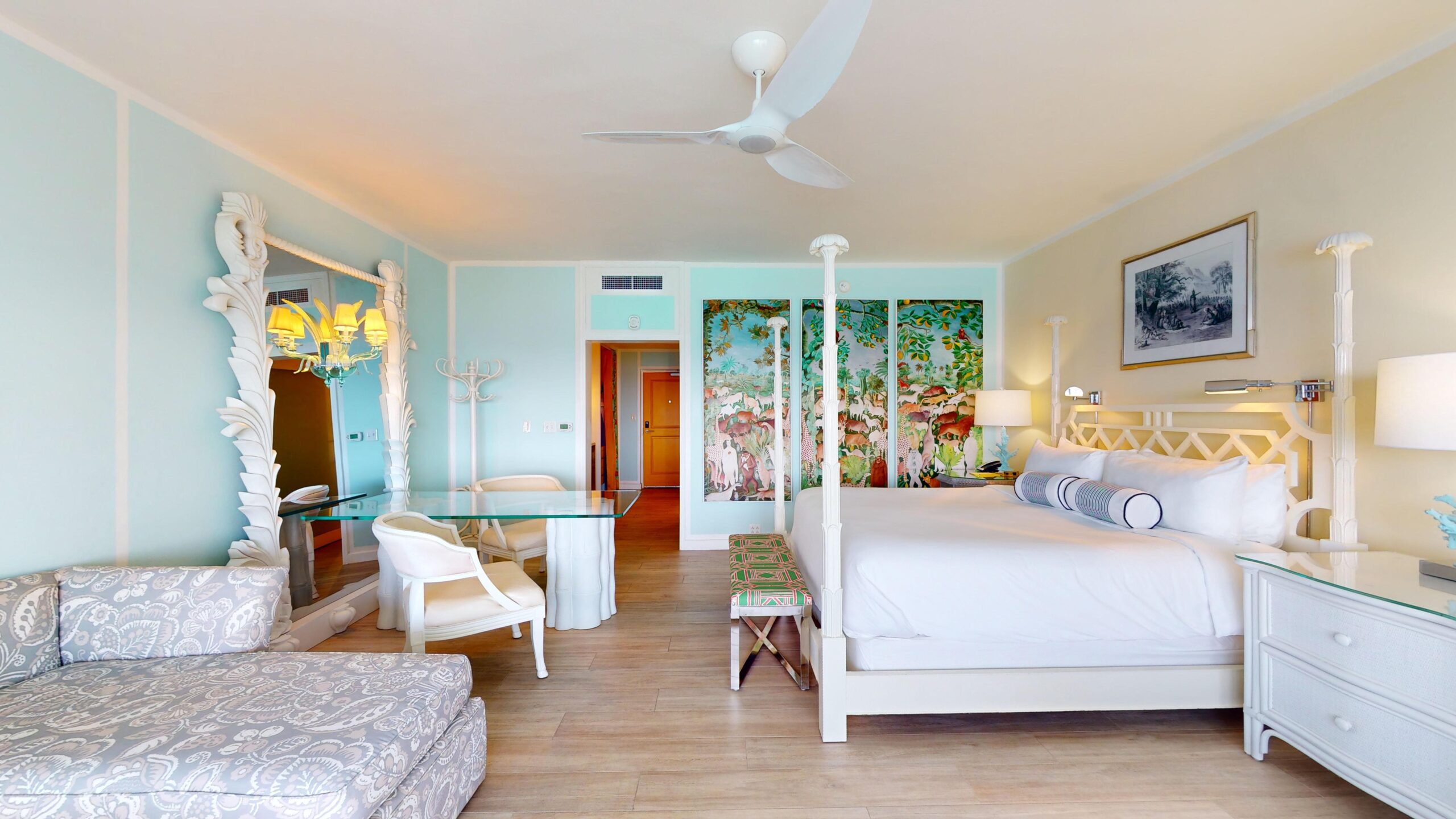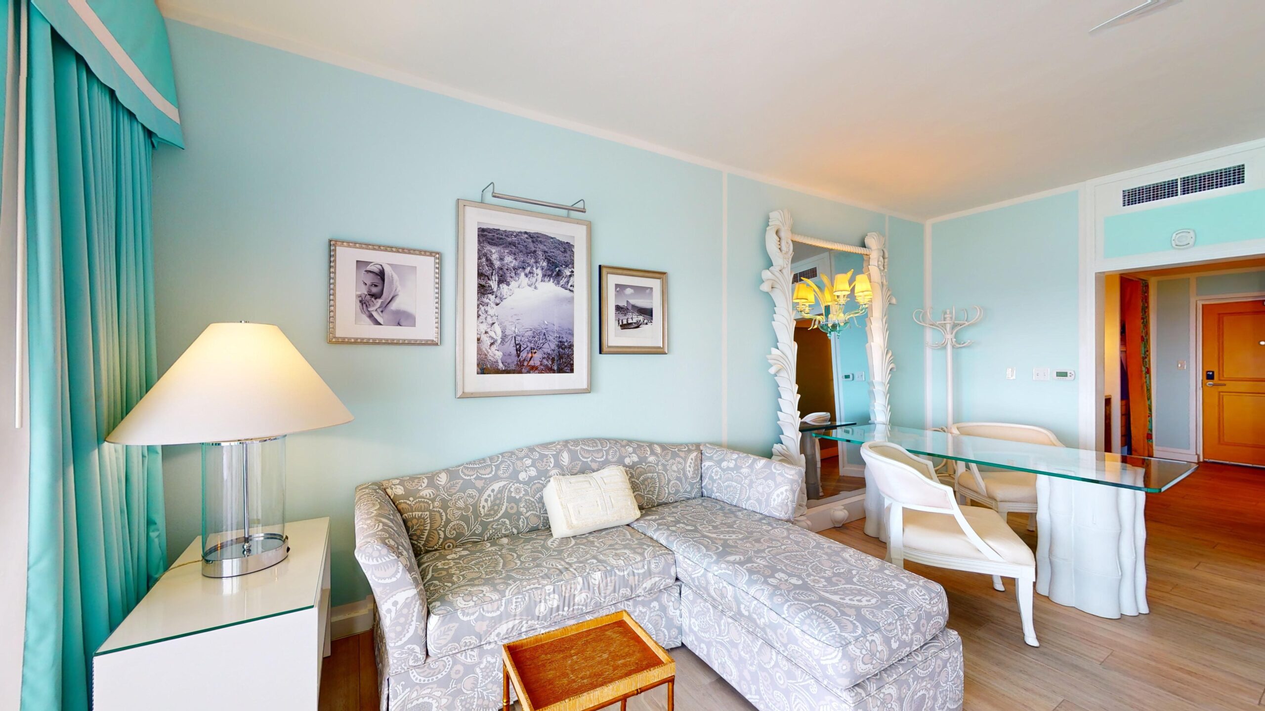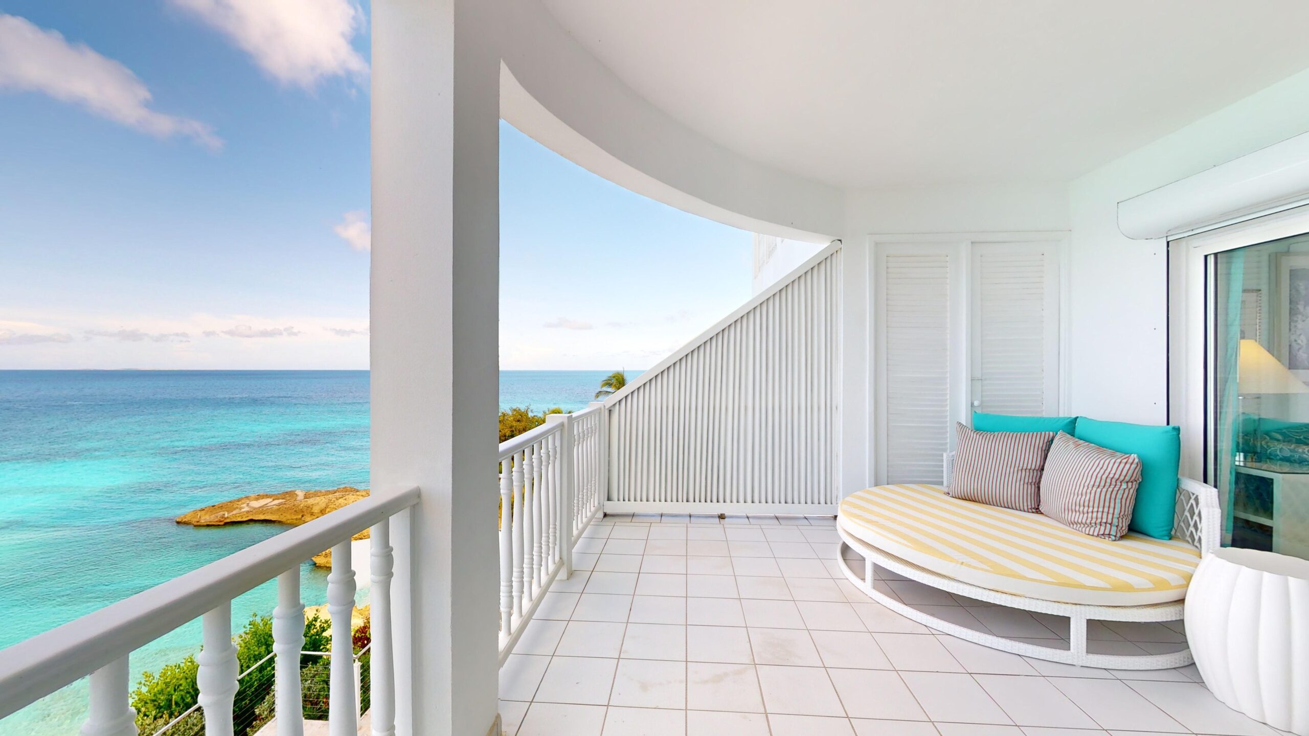 A bright orange front door evokes Anguilla’s sunlit warmth, while walls in robin’s egg blue are inspired by the phenomenal sea views from your expansive private terrace.